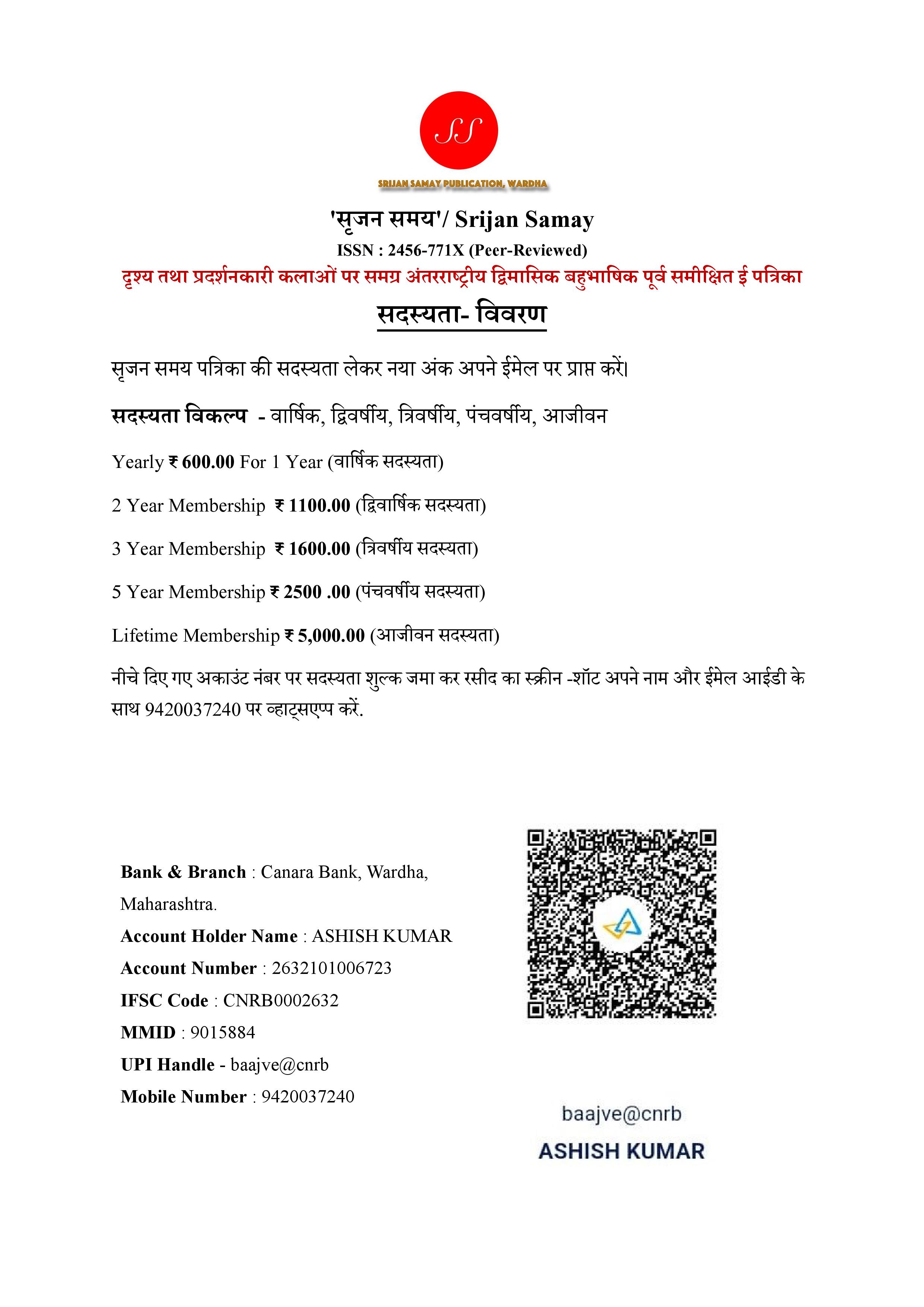 - reviewed) ई जर्नल (ResearchJournal) है। जिसका प्रकाशन सृजन समय बहुद्देशीय सामाजिक संस्था, वर्धा